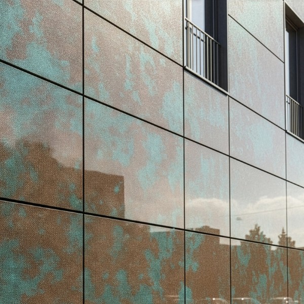Solarfassade mit bedruckter Kupferstruktur – hochwertige Metalloptik für innovative PV-Fassadenlösungen
